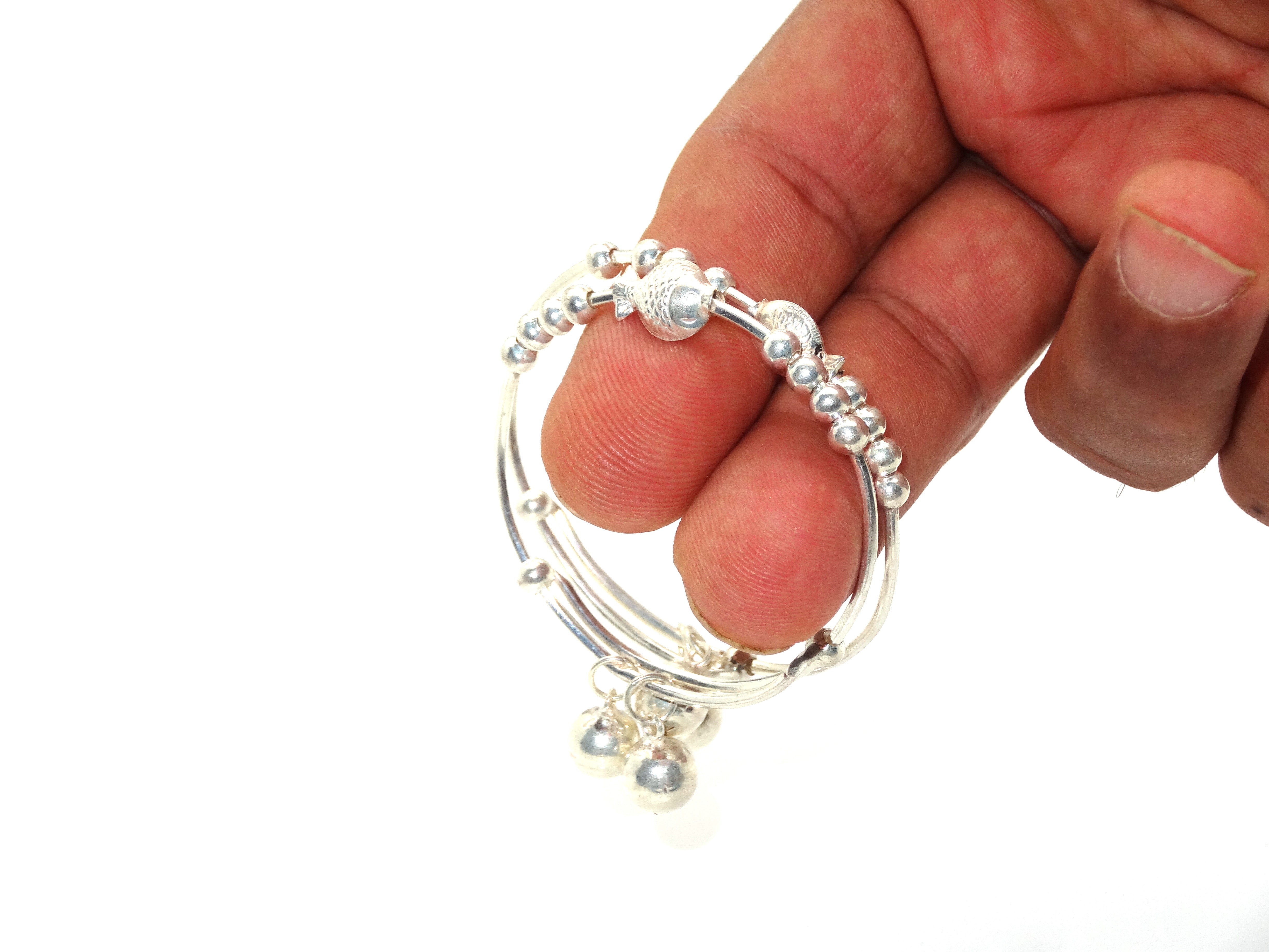 Gauri925 Sterling Silver Bangles for Child with Charms | 1 Pair | With Certificate Of Authenticity and 925 Stamp | 6 Months Warranty