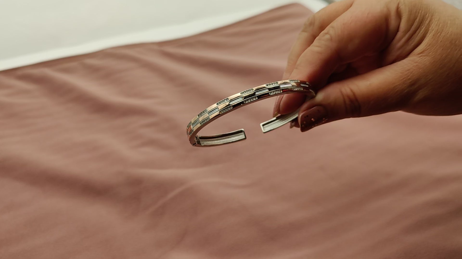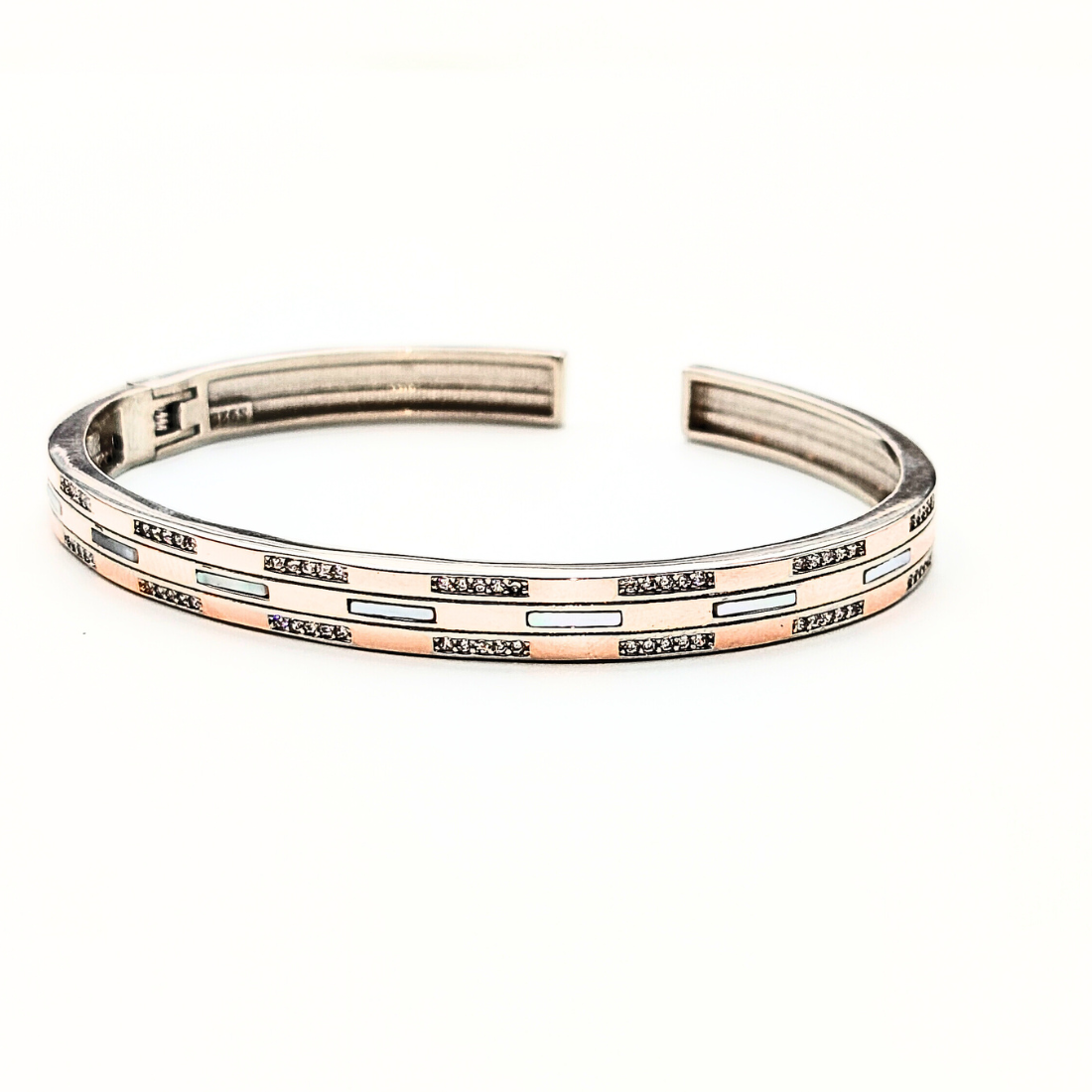 Expertly crafted with 925 silver, this unisex bangle features sparkling zircon stones for added elegance and glamour. This timeless piece adds a touch of sophistication to any outfit.
