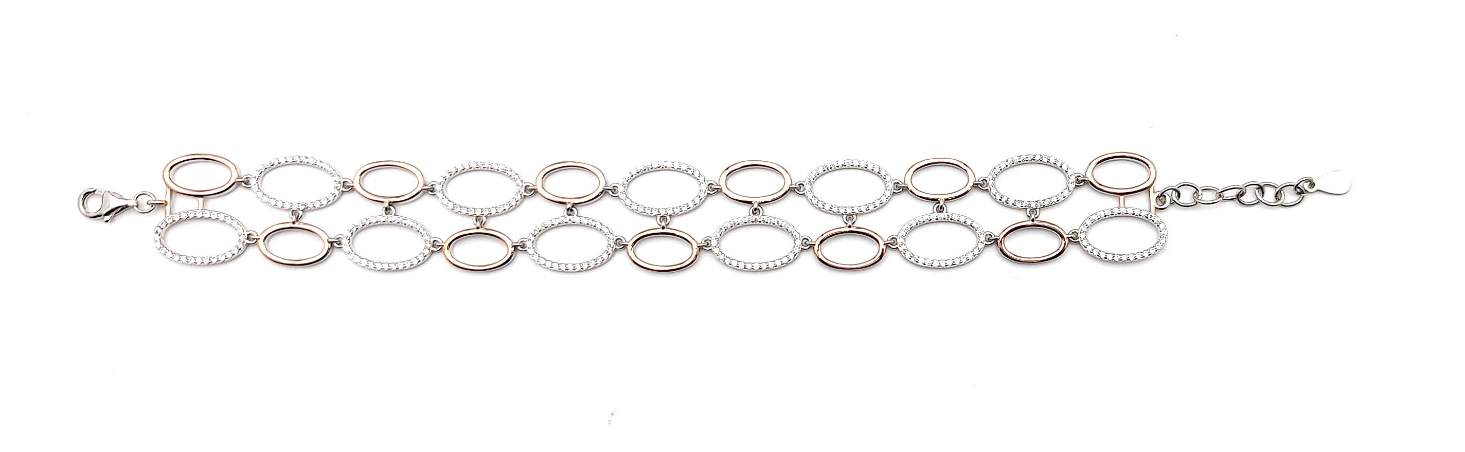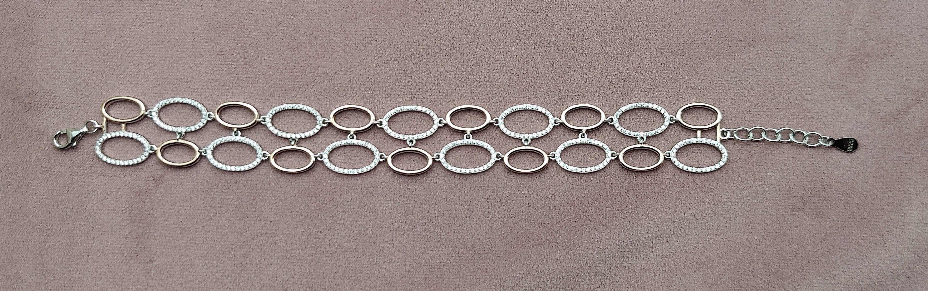 Elevate your style with our stunning Silver Berlin Rose Gold Bracelet for Her. Crafted with precision, this bracelet exudes elegance and sophistication. Its intricate design showcases the perfect blend of silver and rose gold, making it a versatile accessory for any occasion. Add a touch of luxury to your outfit and make a statement with this must-have piece.