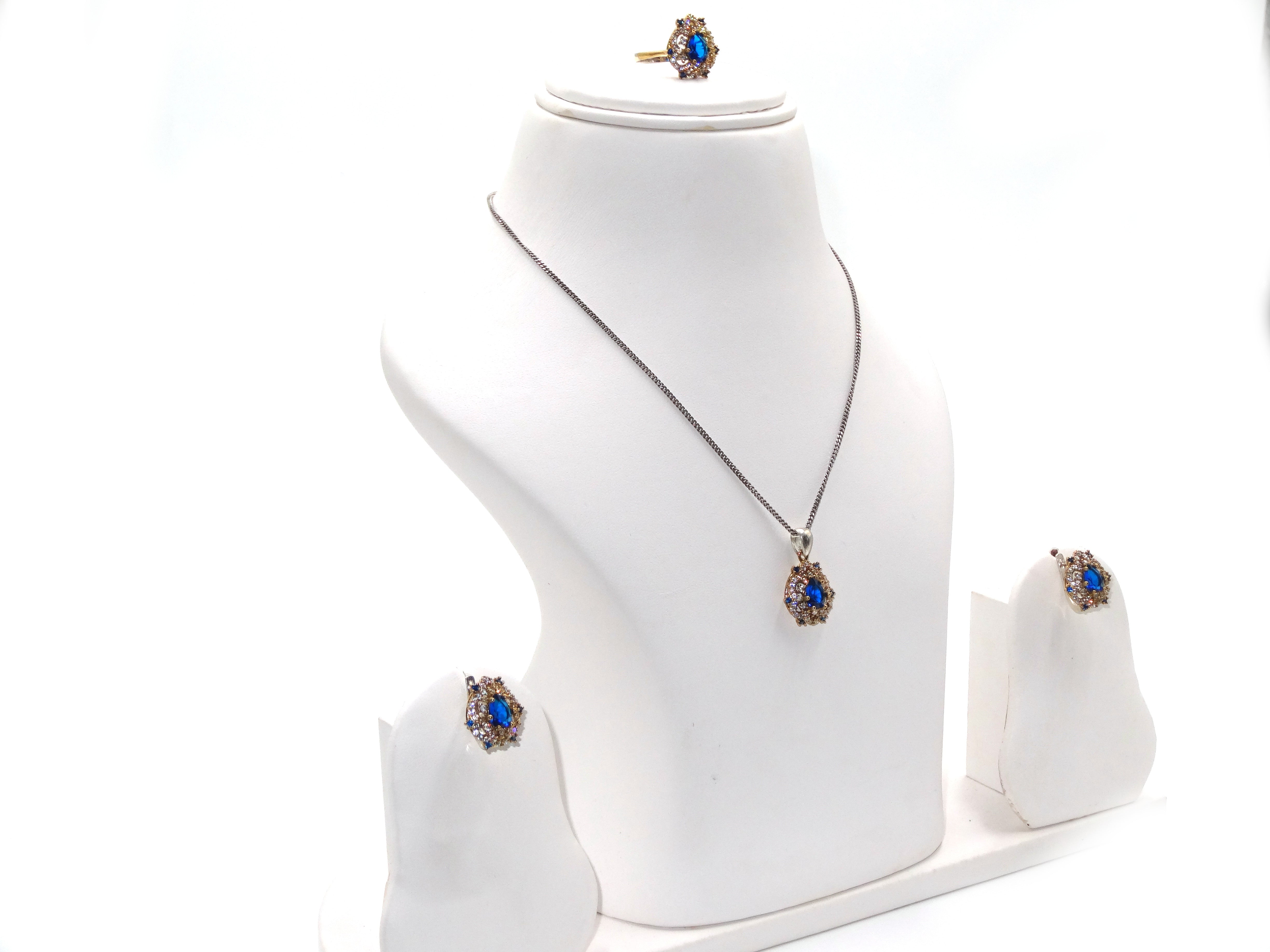 - Multicolor Set with Blue Cut Stones and Cubic Zirconia Stones.