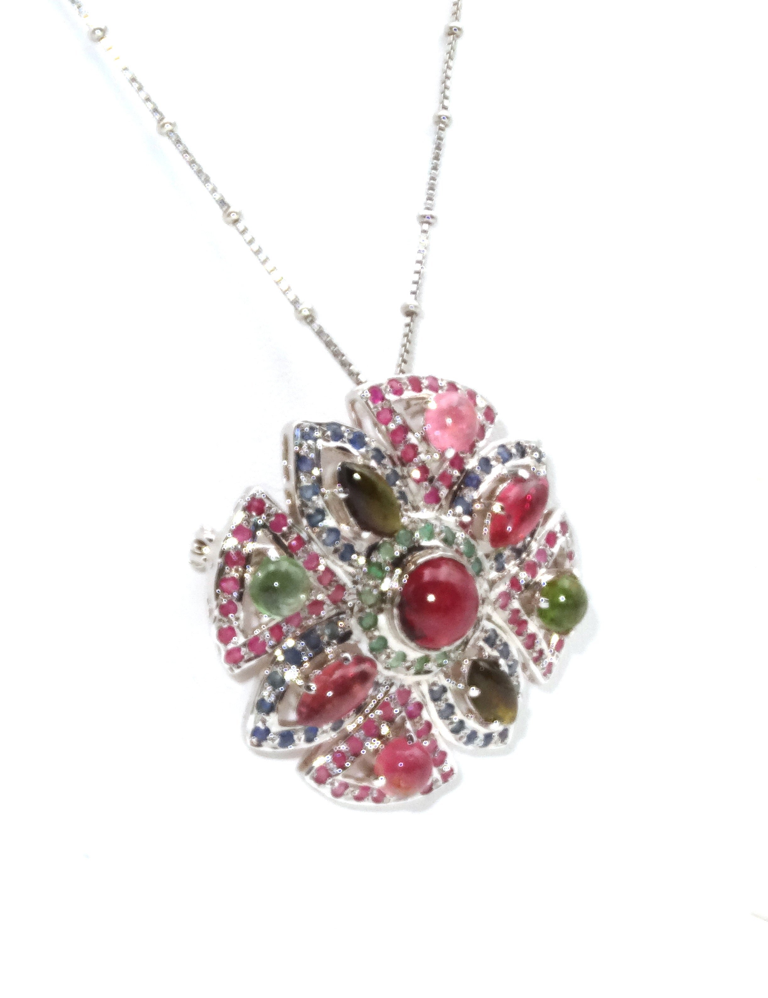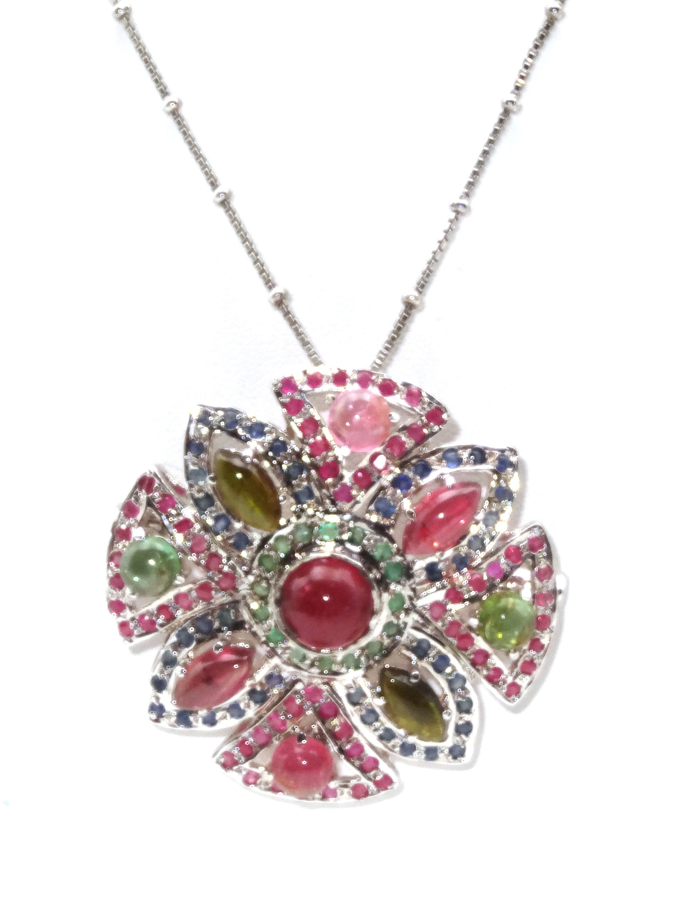 This exquisite Sterling Silver Multi Stones Pendant is a shining statement of timeless, classic beauty. Crafted from sterling silver and adorned with multi-hued stones, this exclusive pendant is a luxurious addition to any collection.