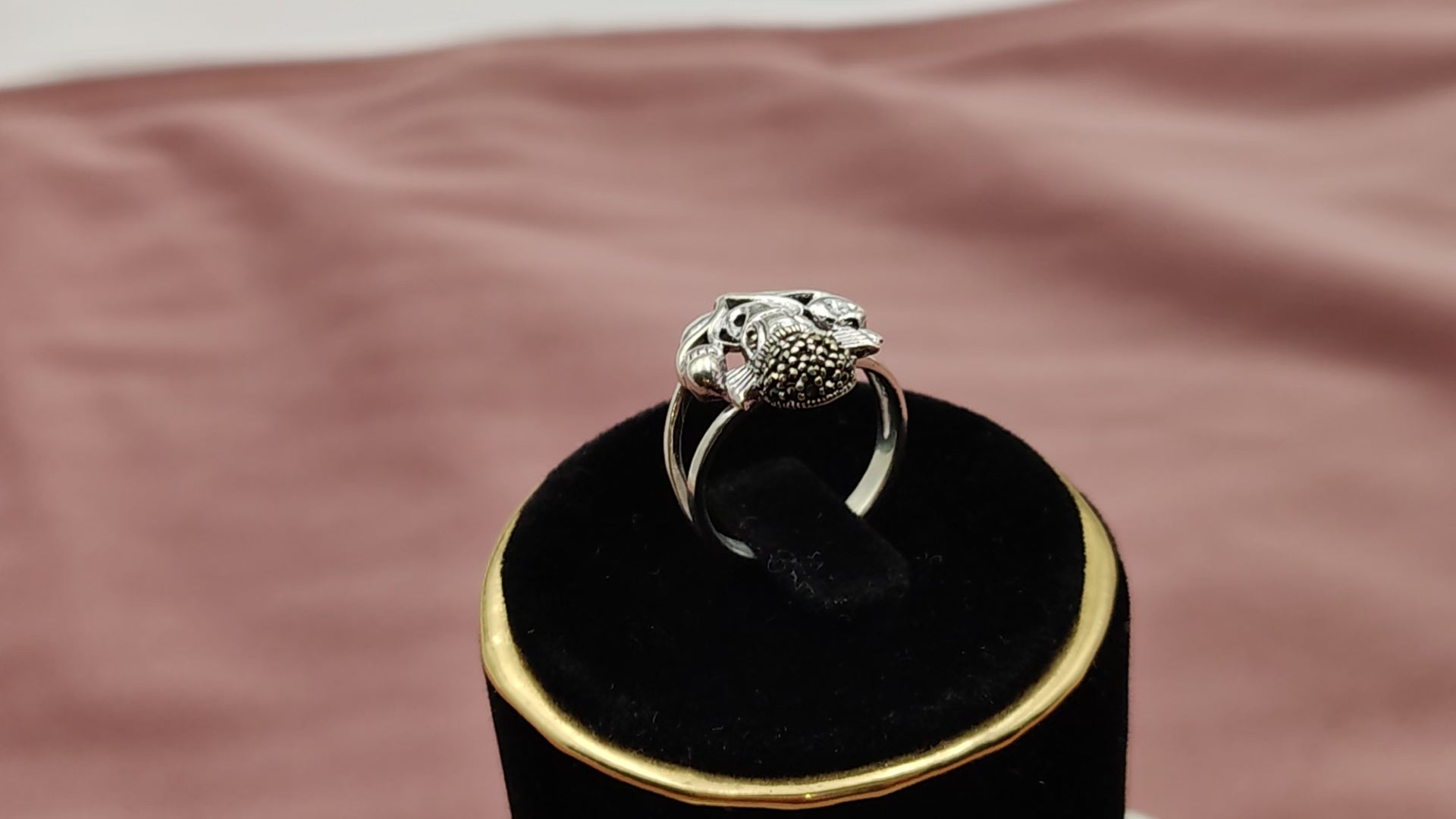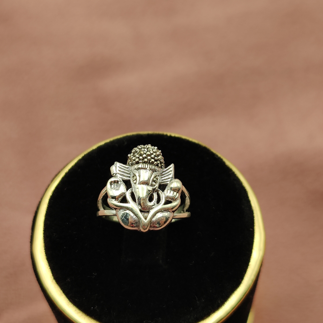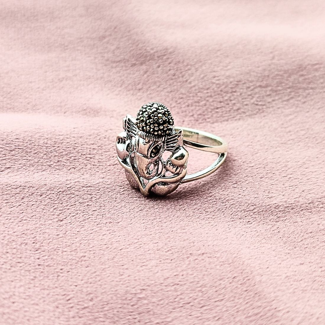 925 Silver Ganesha Ring with Mercasite Stones for Women