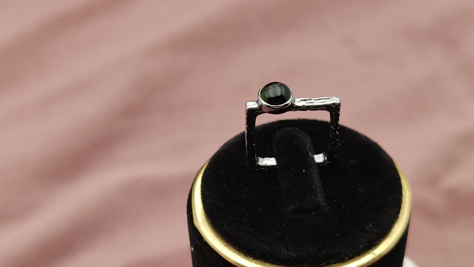 Silver Square Ring | Uncut Onyx Stone | Unisex