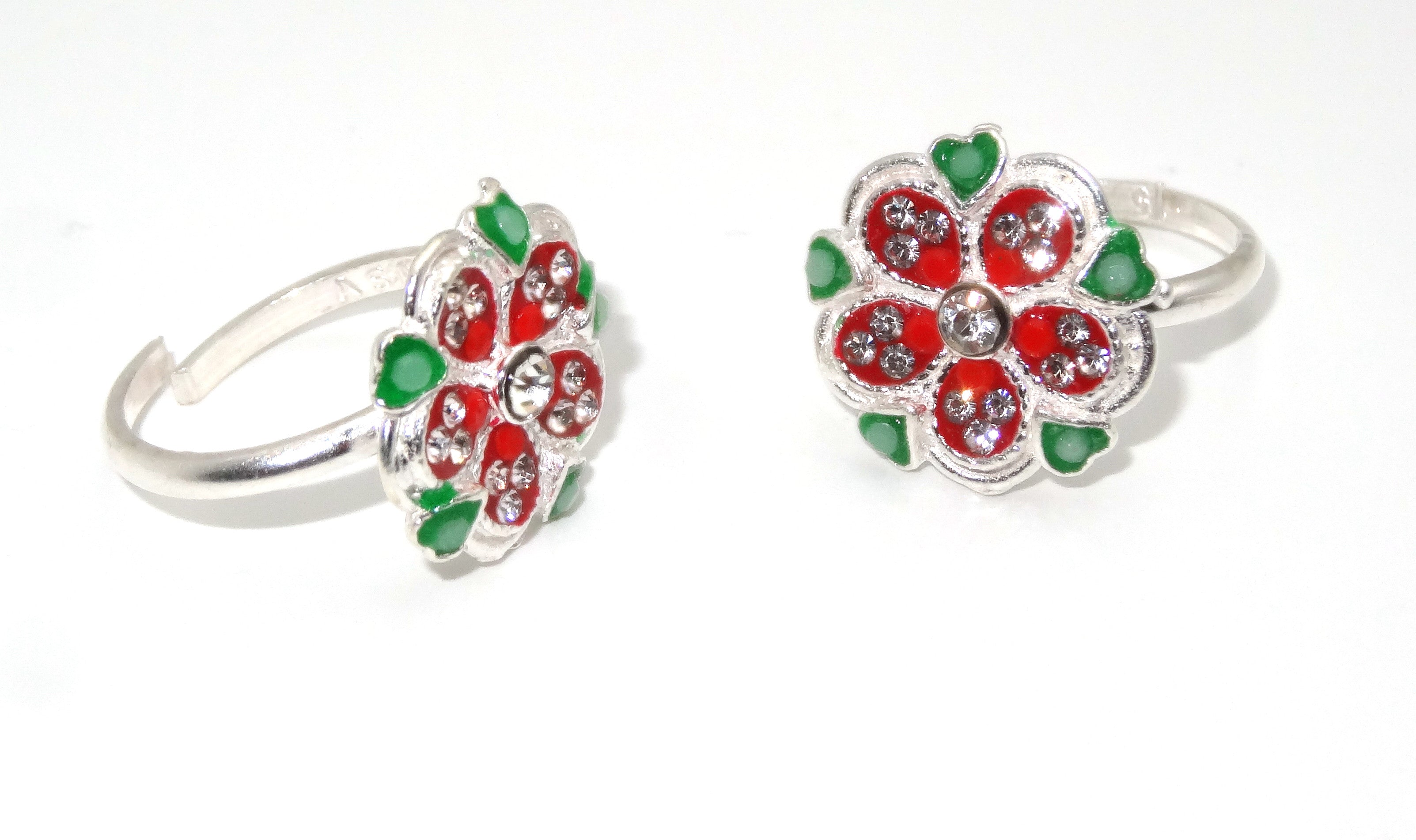 Silver Meenakari Toe Ring for Women/Girls