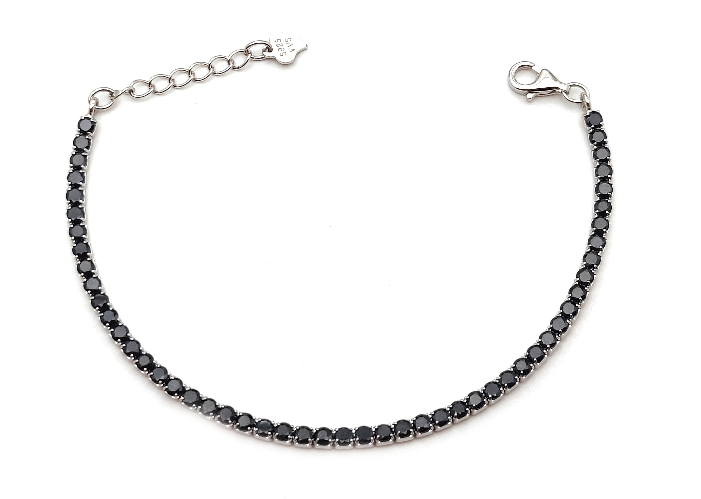 925 Silver Black Crystal Bracelet for Women/Girls