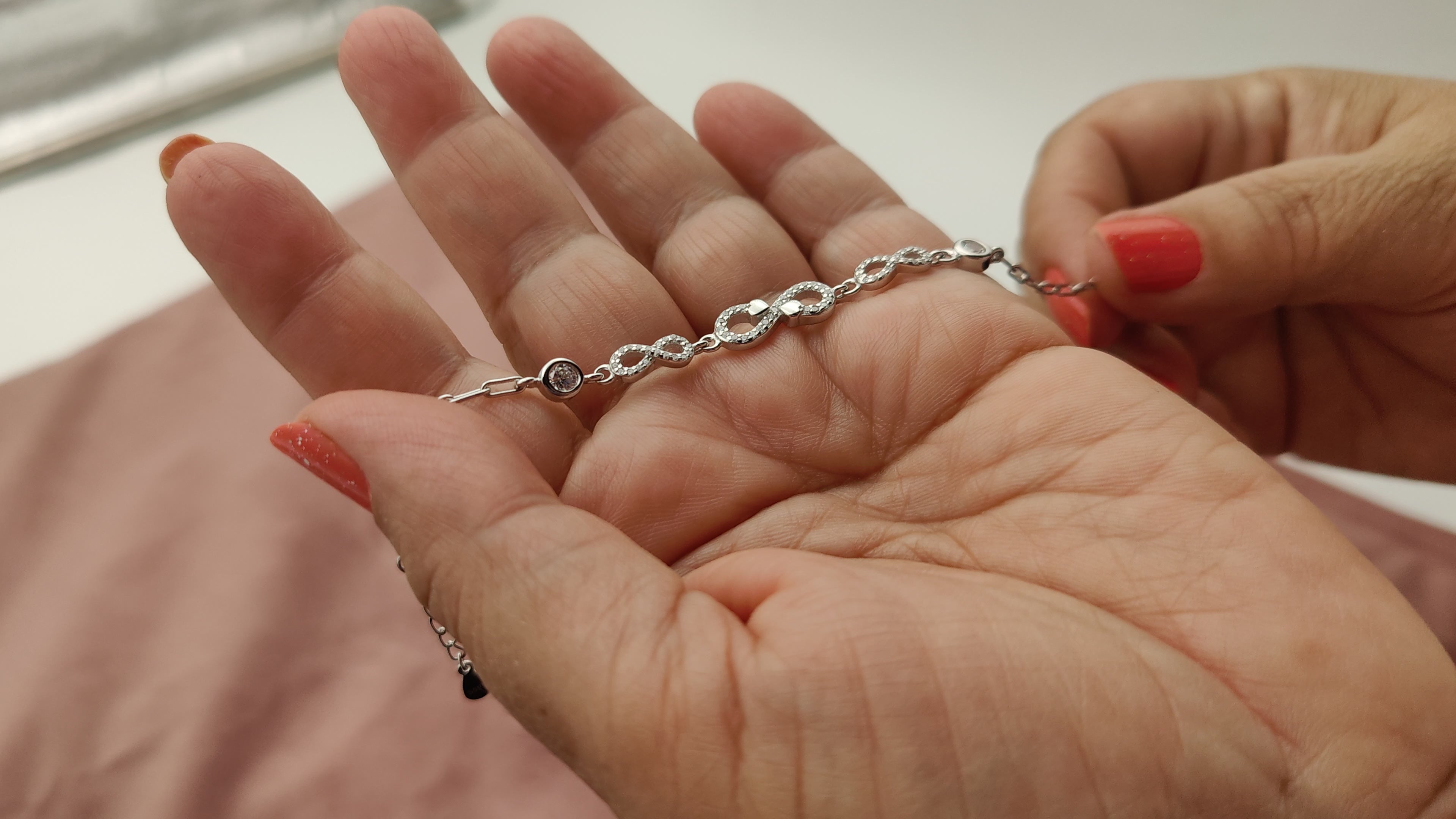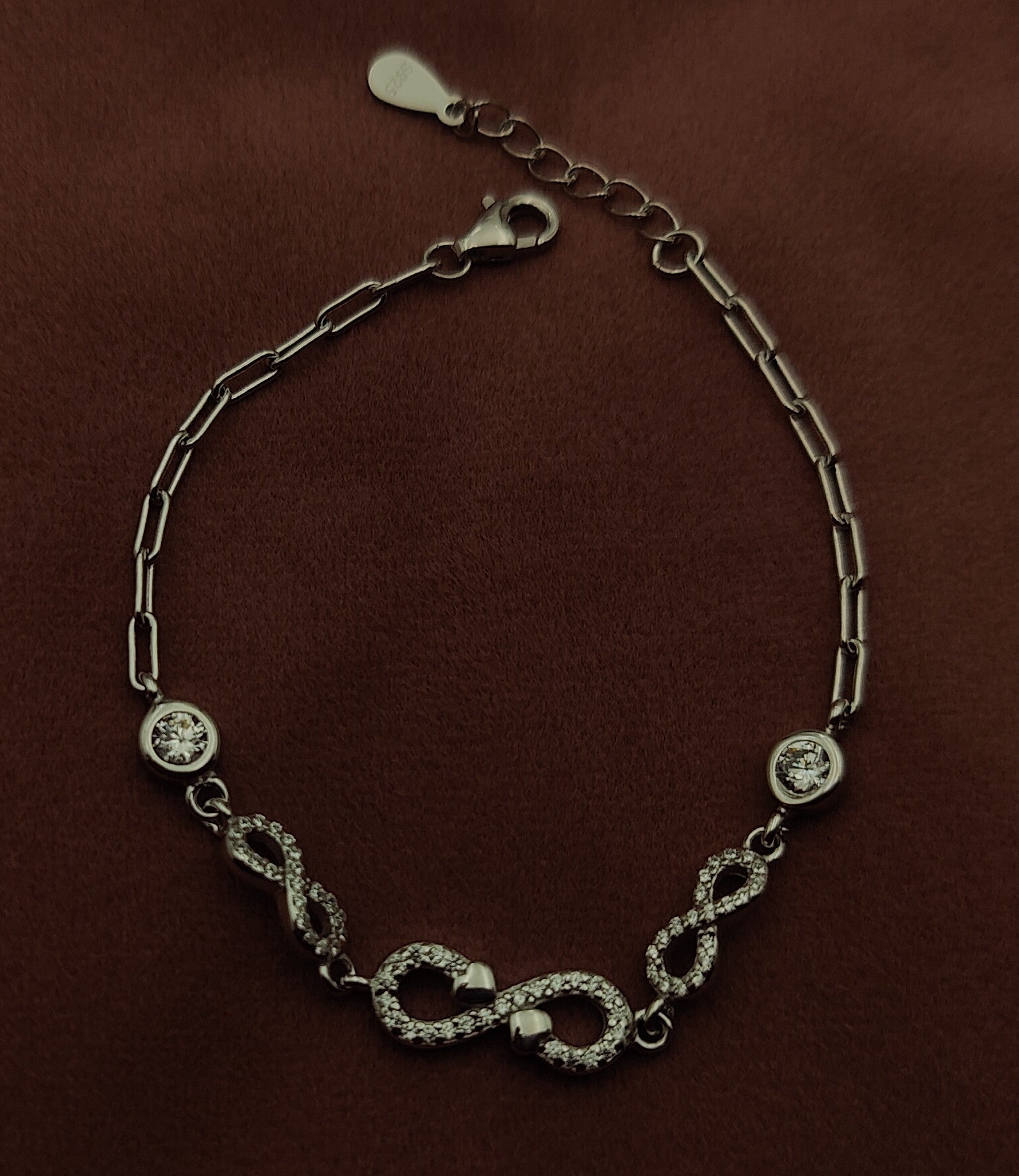 Expertly crafted with 925 silver, this Infinity Loop Bracelet is the perfect gift for her. Its sleek design symbolizes eternal love and modern elegance. Made with high-quality materials, this bracelet will shine on any occasion. Show your love with this timeless accessory.