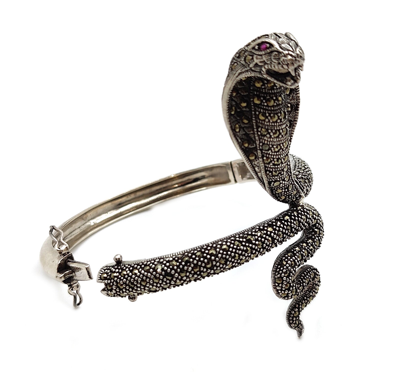 This 925 Silver Snake Bangle is the perfect accessory for women and girls alike. Crafted with high-quality silver, this bangle adds a touch of elegance to any outfit. Its unique snake design represents strength and transformation, making it a meaningful addition to any jewelry collection. Expertly crafted with precision, this bangle is a must-have for those who appreciate fine jewelry.