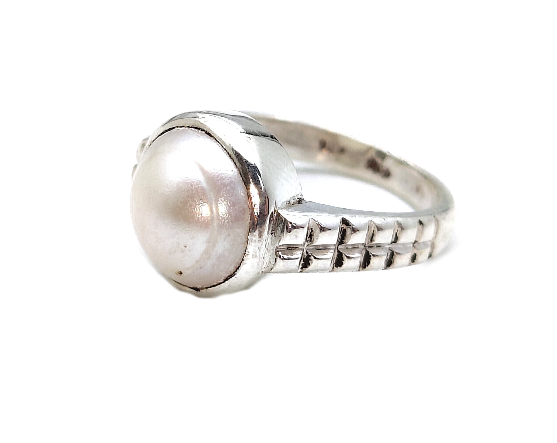 Classic 925 Sterling Silver Pearl Solitaire Ring for Men/Women