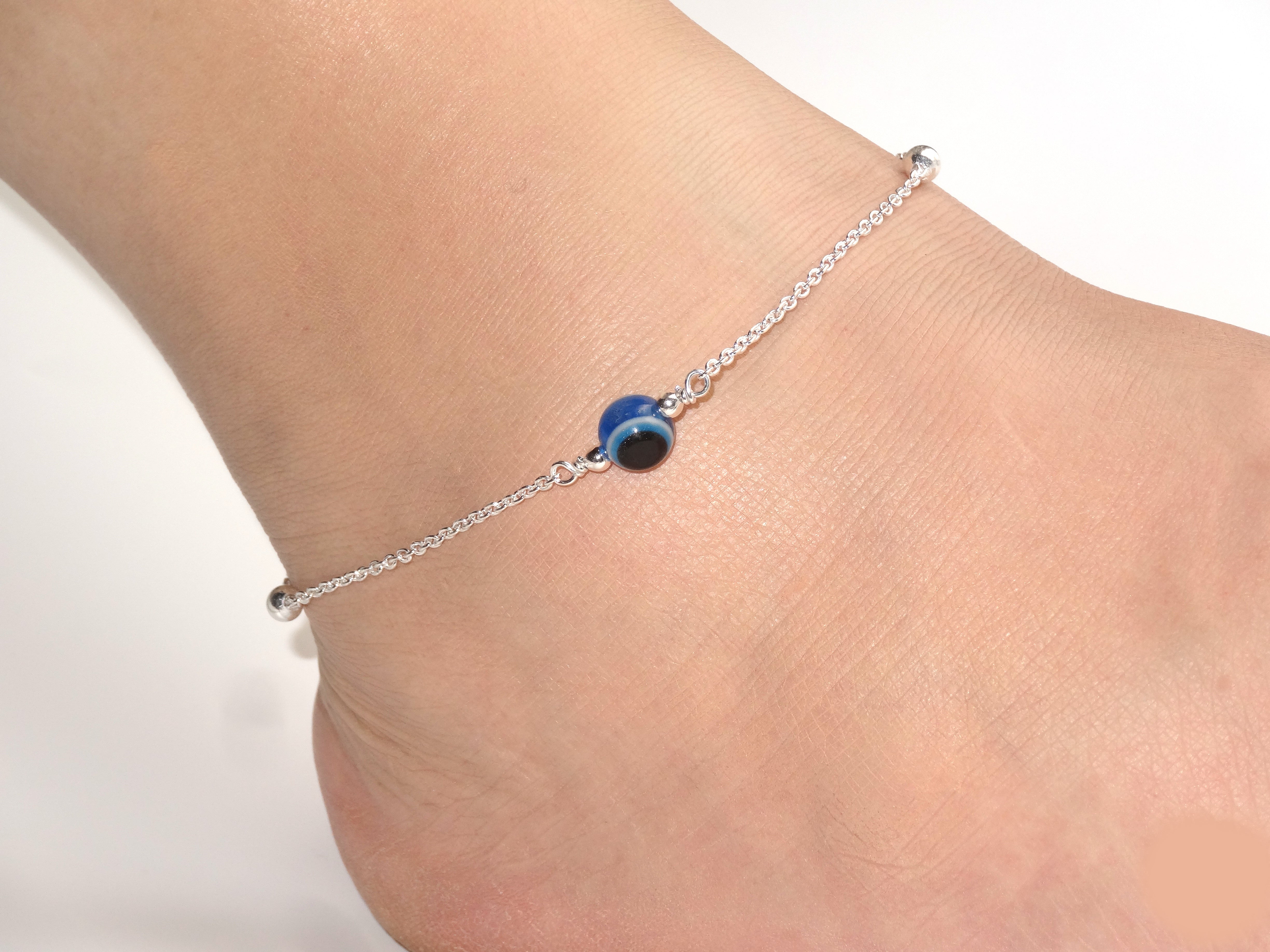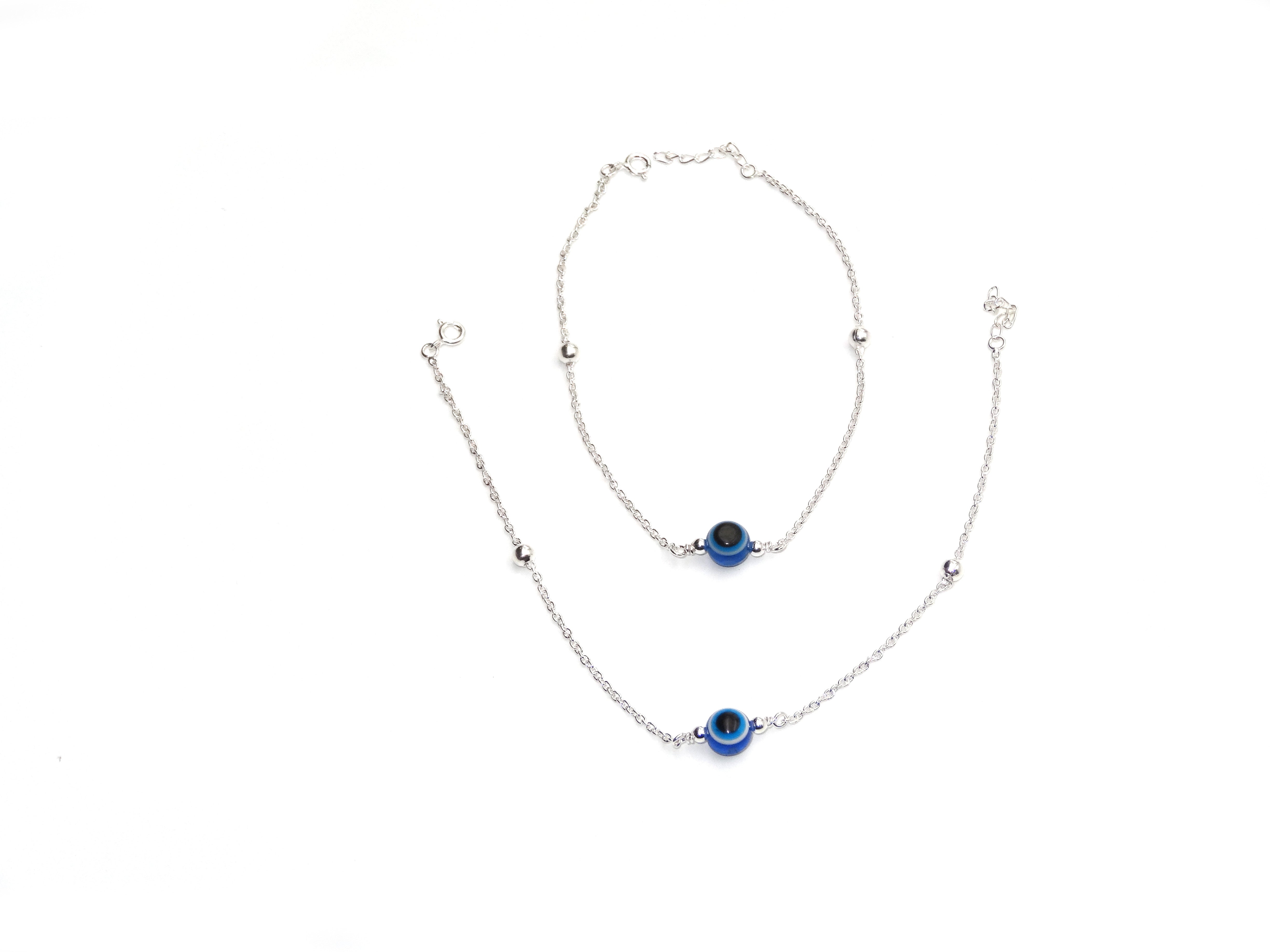 Gauri925 Sterling Silver Anklet for Women with Evil Eye | 1 Pair | With Certificate Of Authenticity and 925 Stamp | 6 Months Warranty