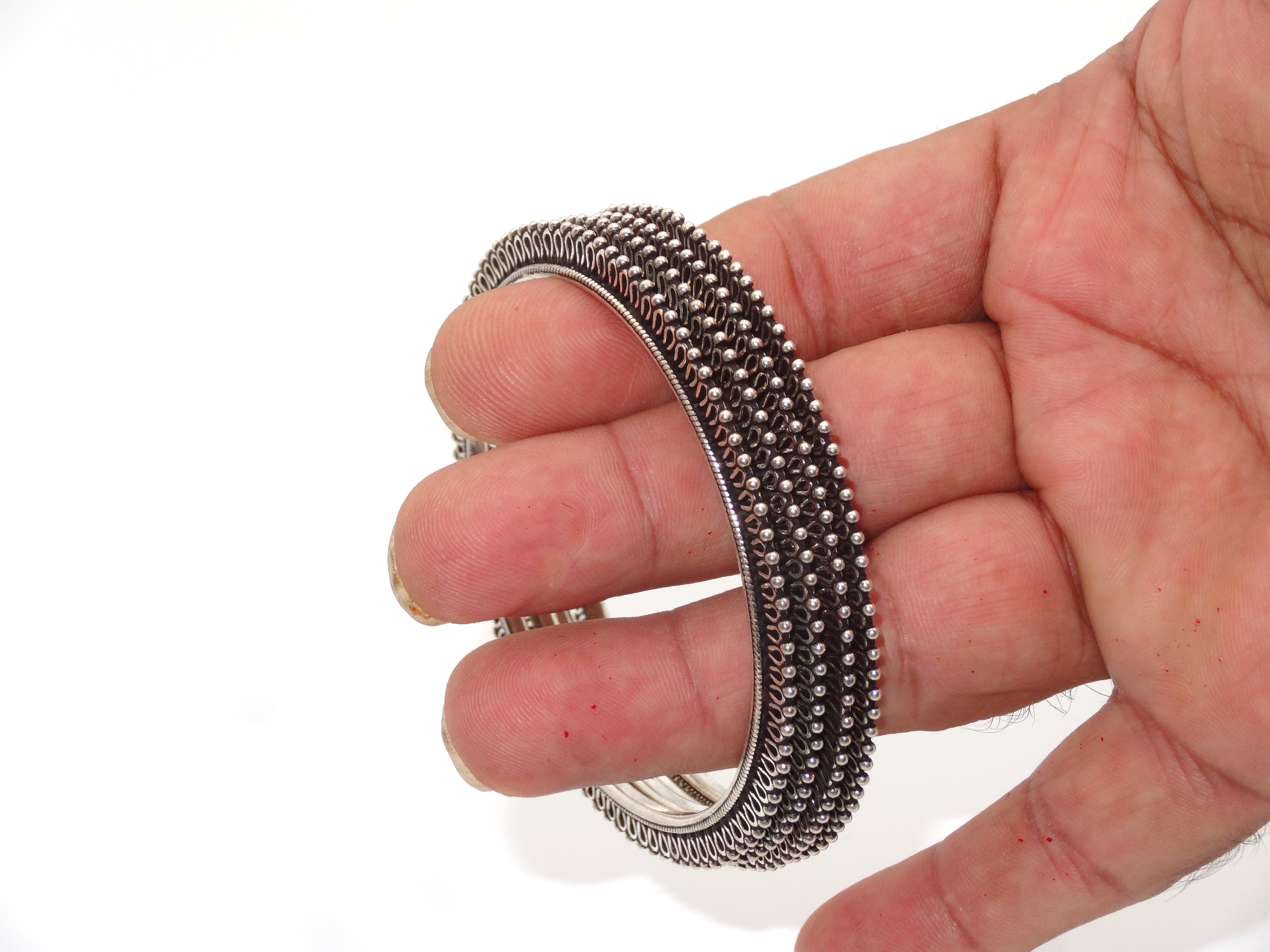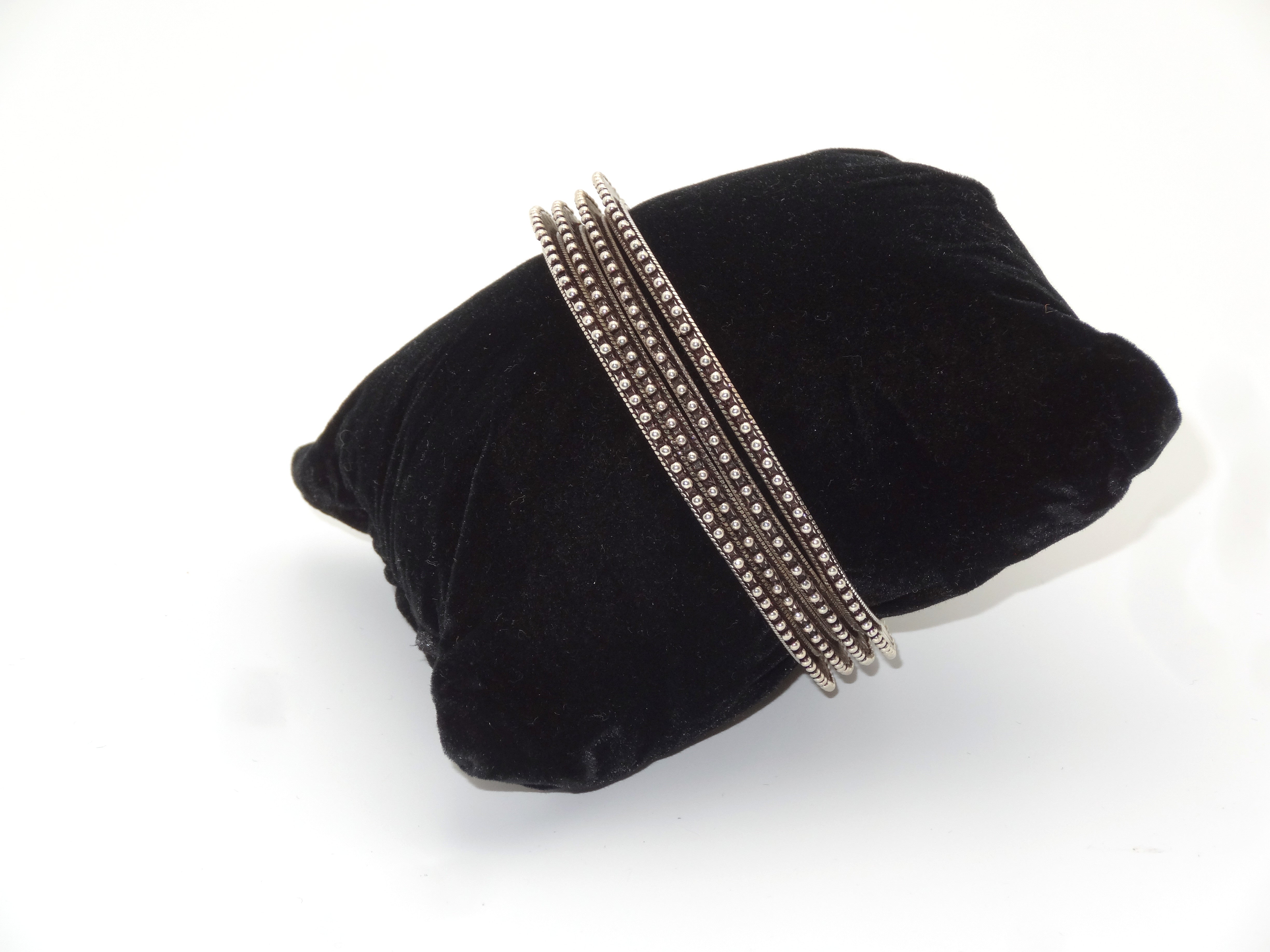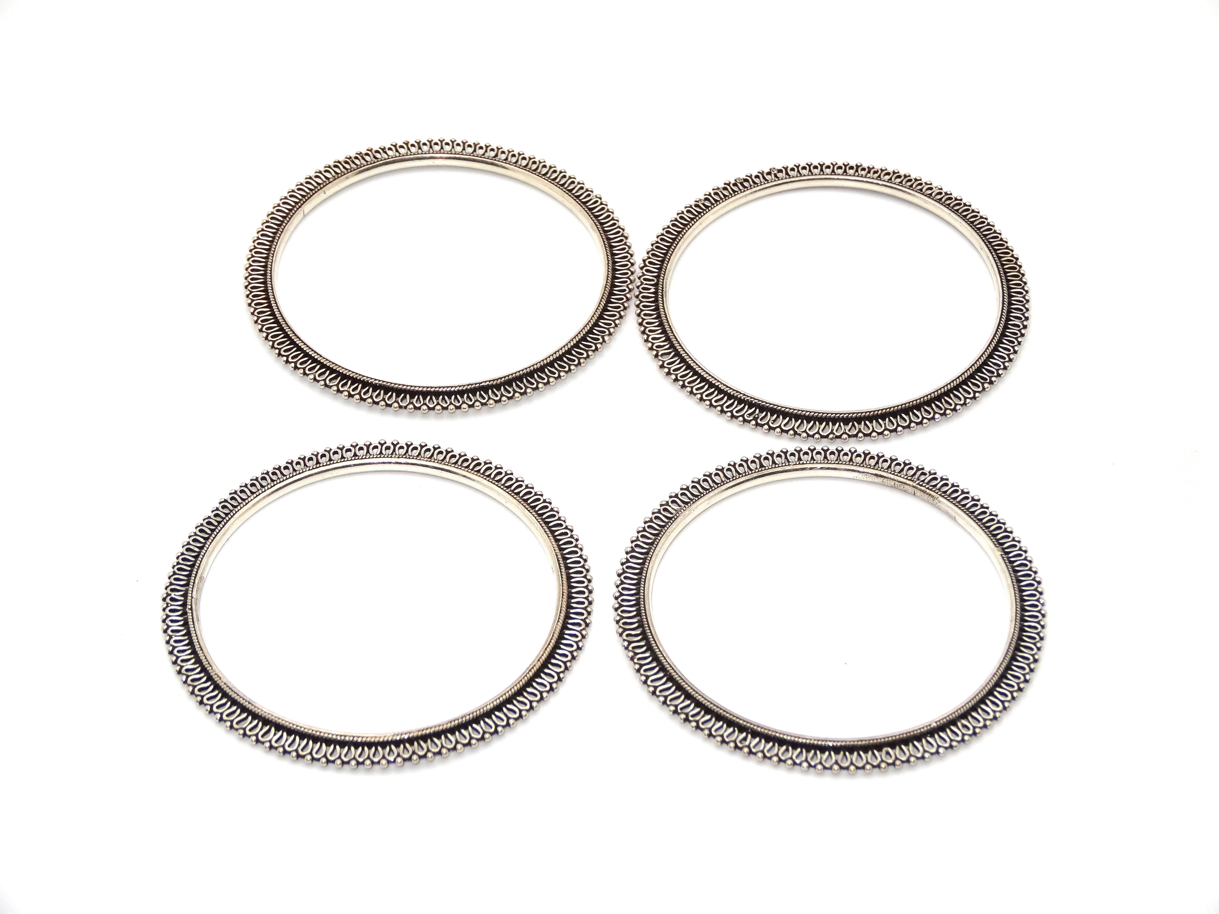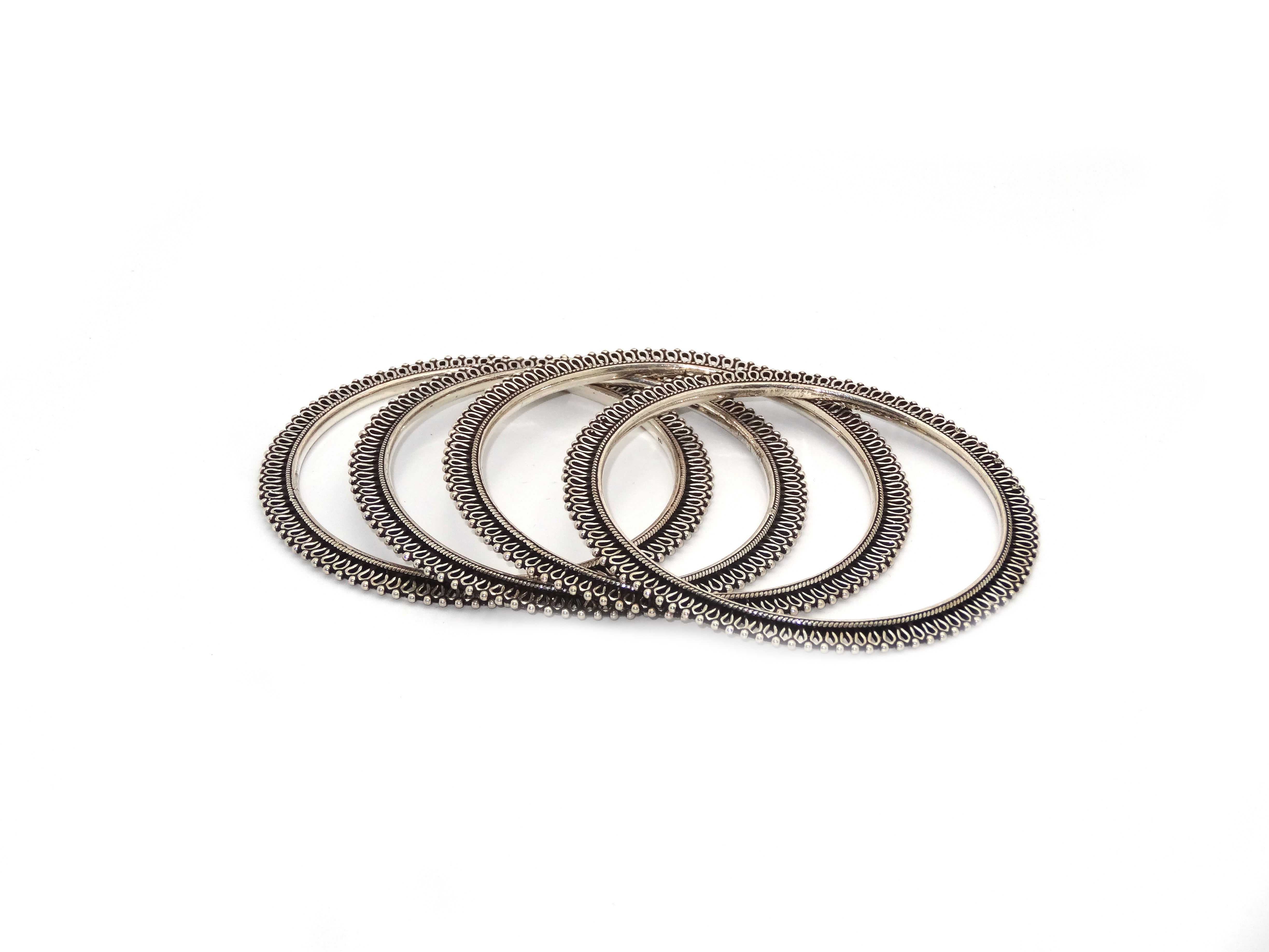 Sterling Silver 925 Oxidised Bangles for Women/Girls. Bangle Diameter: 6.5 centimeters. Intricate Workmanship. Medium Size, Set of 4 Bangles. Perfect for Wearing and Gifting.