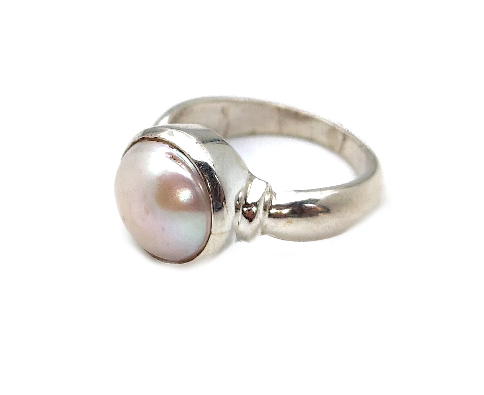 Elevate your everyday elegance with this refined freshwater pearl band, meticulously crafted from sterling silver. The lustrous pearl sits gracefully atop a sleek silver band, creating a timeless piece that transcends gender and occasion. Its minimalist design speaks to understated luxury, perfect for those who appreciate quality craftsmanship and subtle sophistication. Whether worn alone for a whisper of refinement or layered with other pieces, this versatile ring brings an air of quiet confidence to any ensemble. A contemporary classic that celebrates the natural beauty of freshwater pearls.