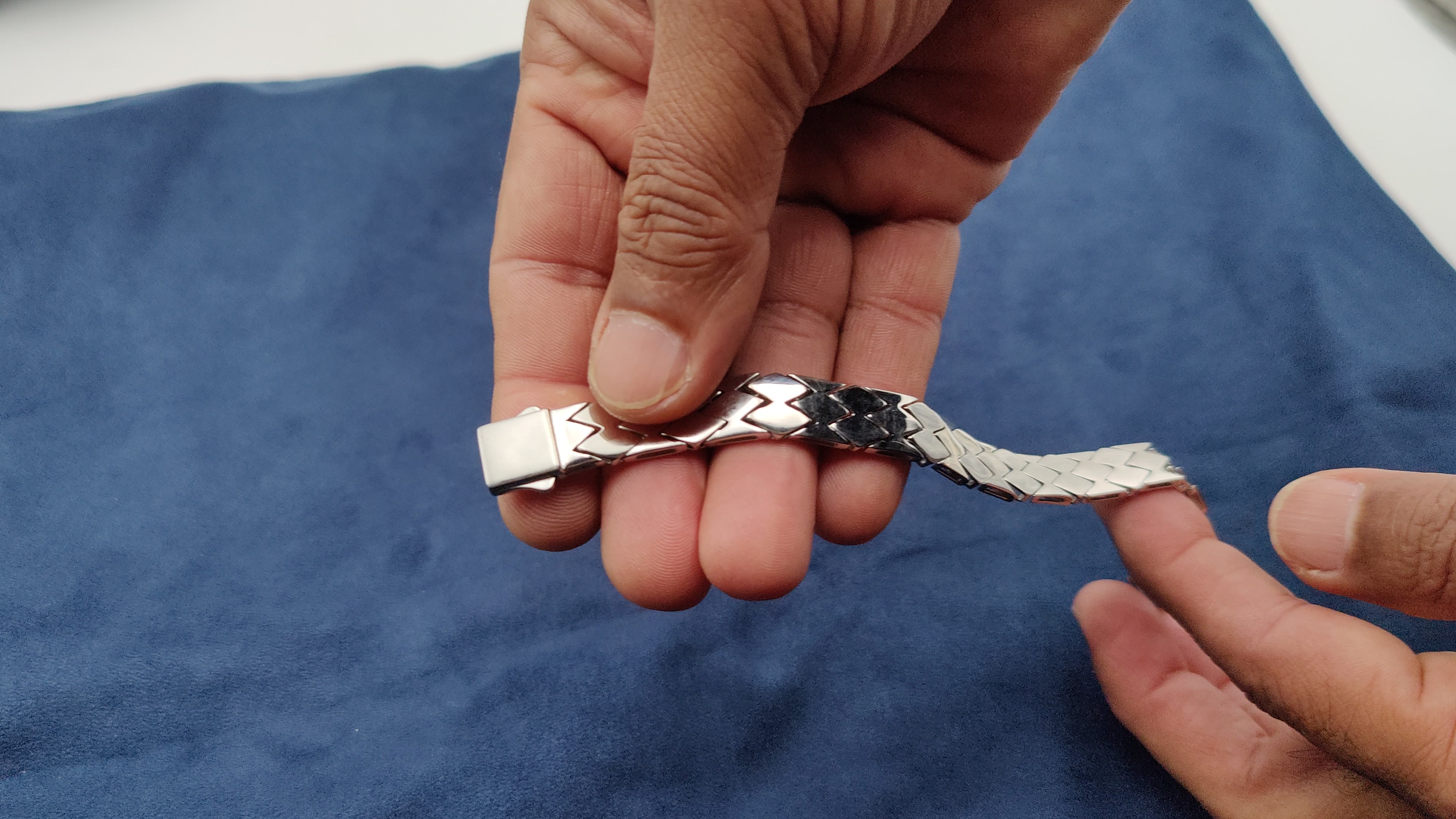 Indulge in timeless luxury with our Silver 925 Curvv Bracelet for Men. Crafted from the finest quality of silver, our bracelet boasts a unique curvilinear design that exudes sophistication and style. Elevate your look and make a statement with this exclusive piece, a must-have for any modern gentleman.