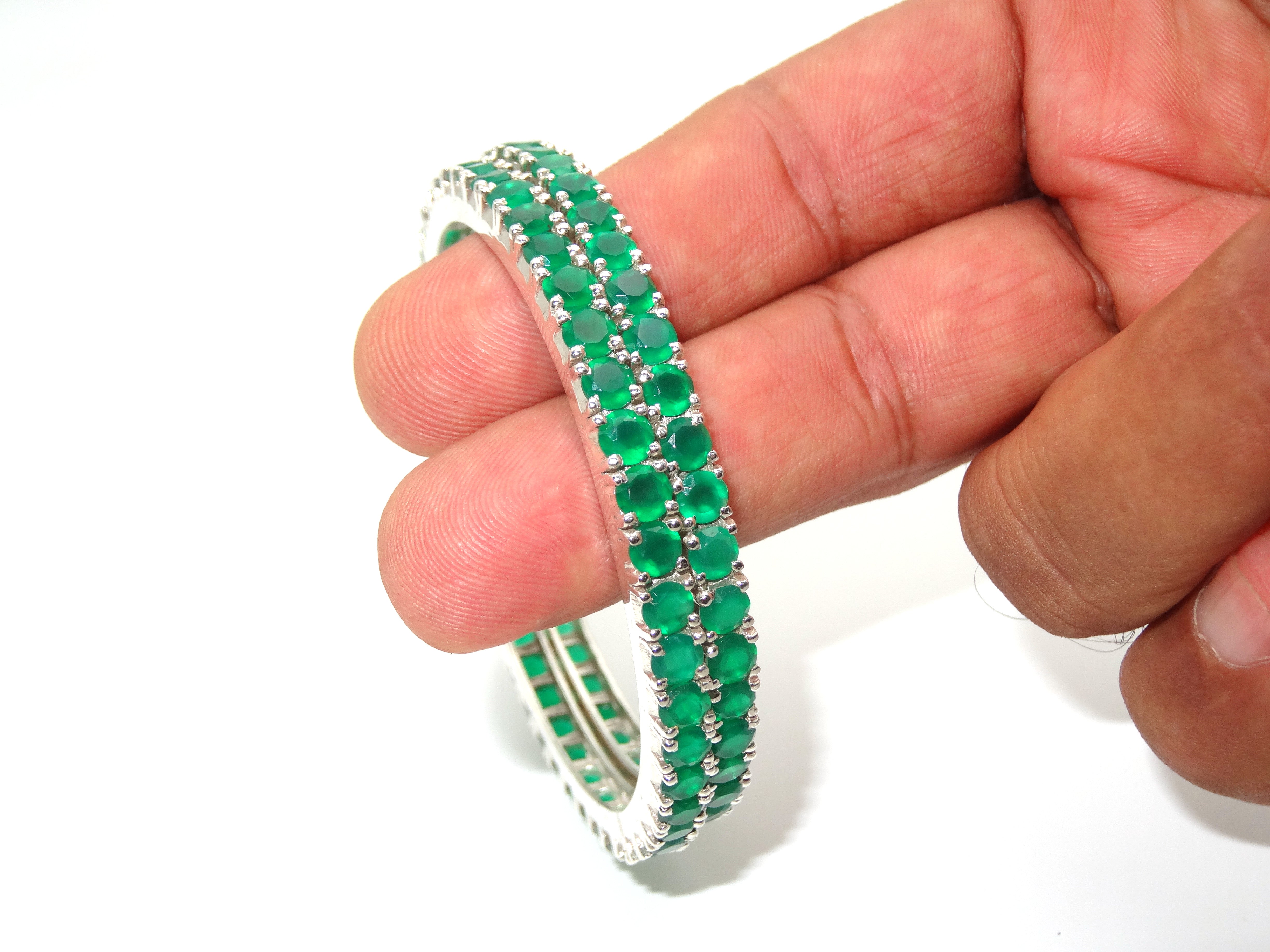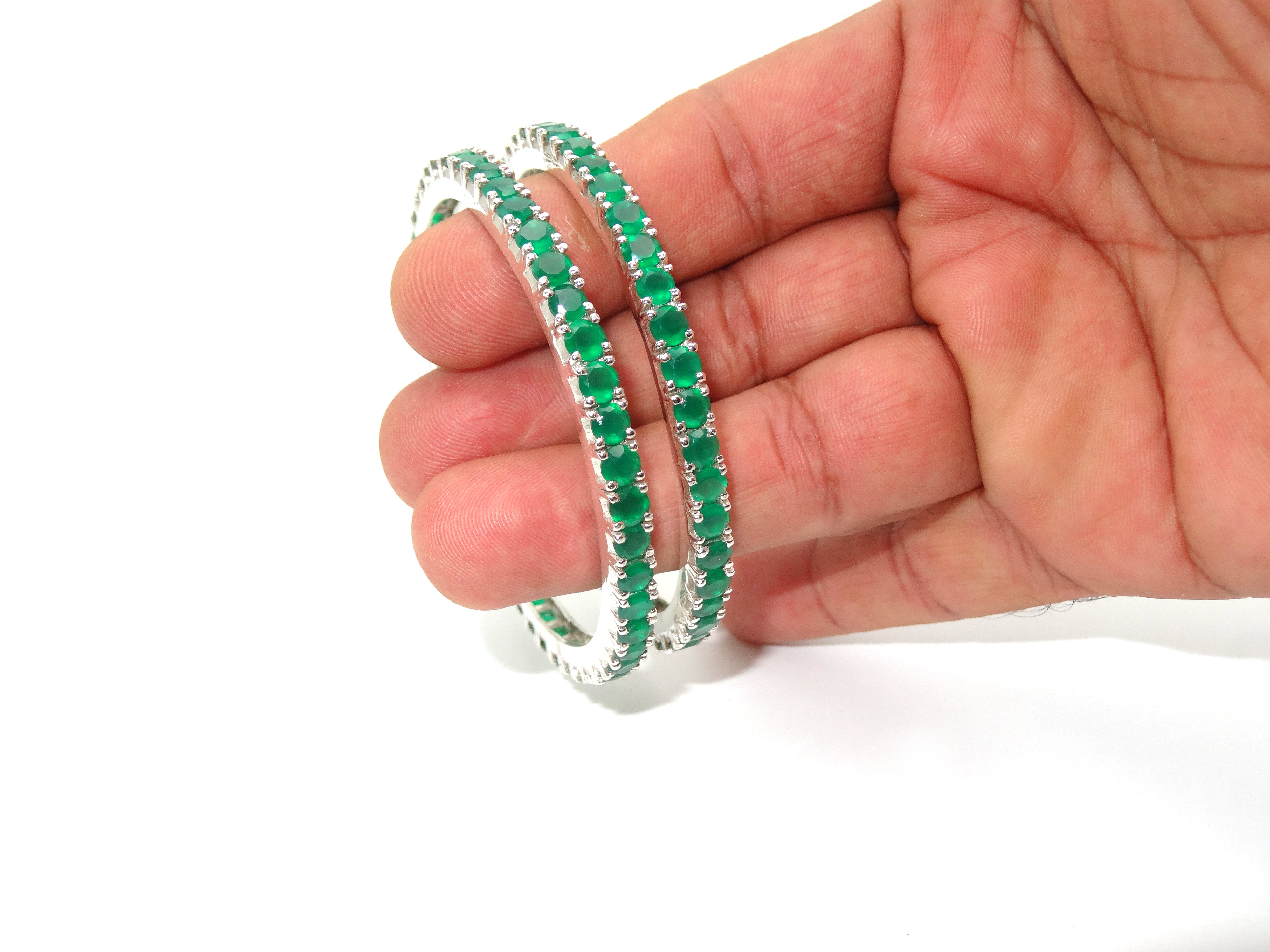 These 925 Silver Bangles are the perfect addition to any look. Emerald and Onyx stones add a beautiful sparkle that will draw attention. Stamped with 925 for authenticity, these Silver Bangles are an ideal gift for any women or girl.