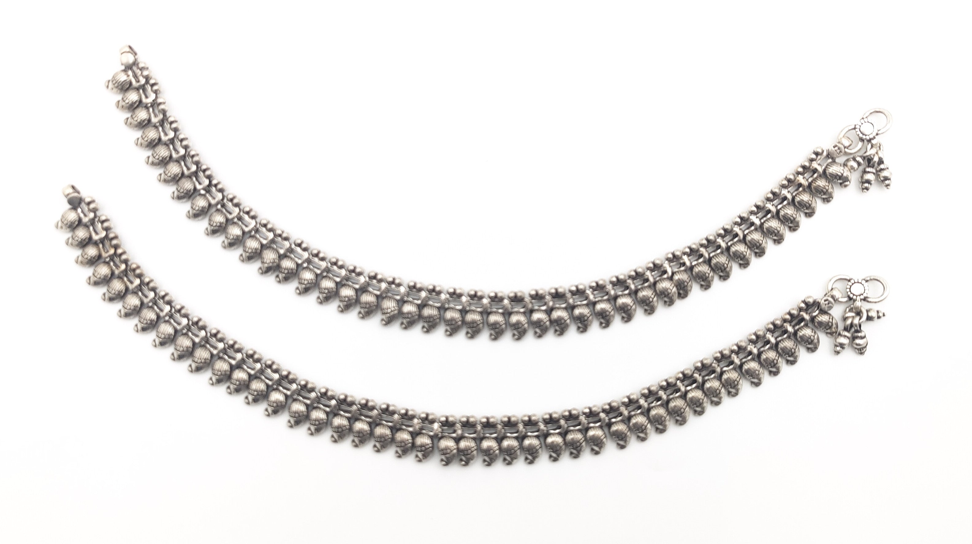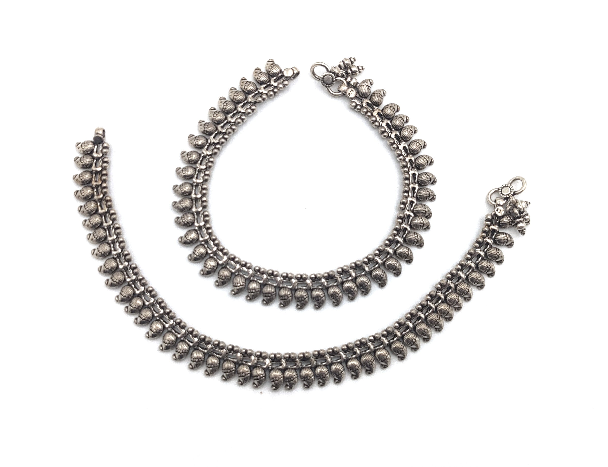 This Silver Oxidised Anklet is the perfect addition to your accessory collection. Exquisitely crafted with a beautiful finish, it will add a hint of sparkle to your wardrobe. Its antique design will make you shine brighter than the stars!