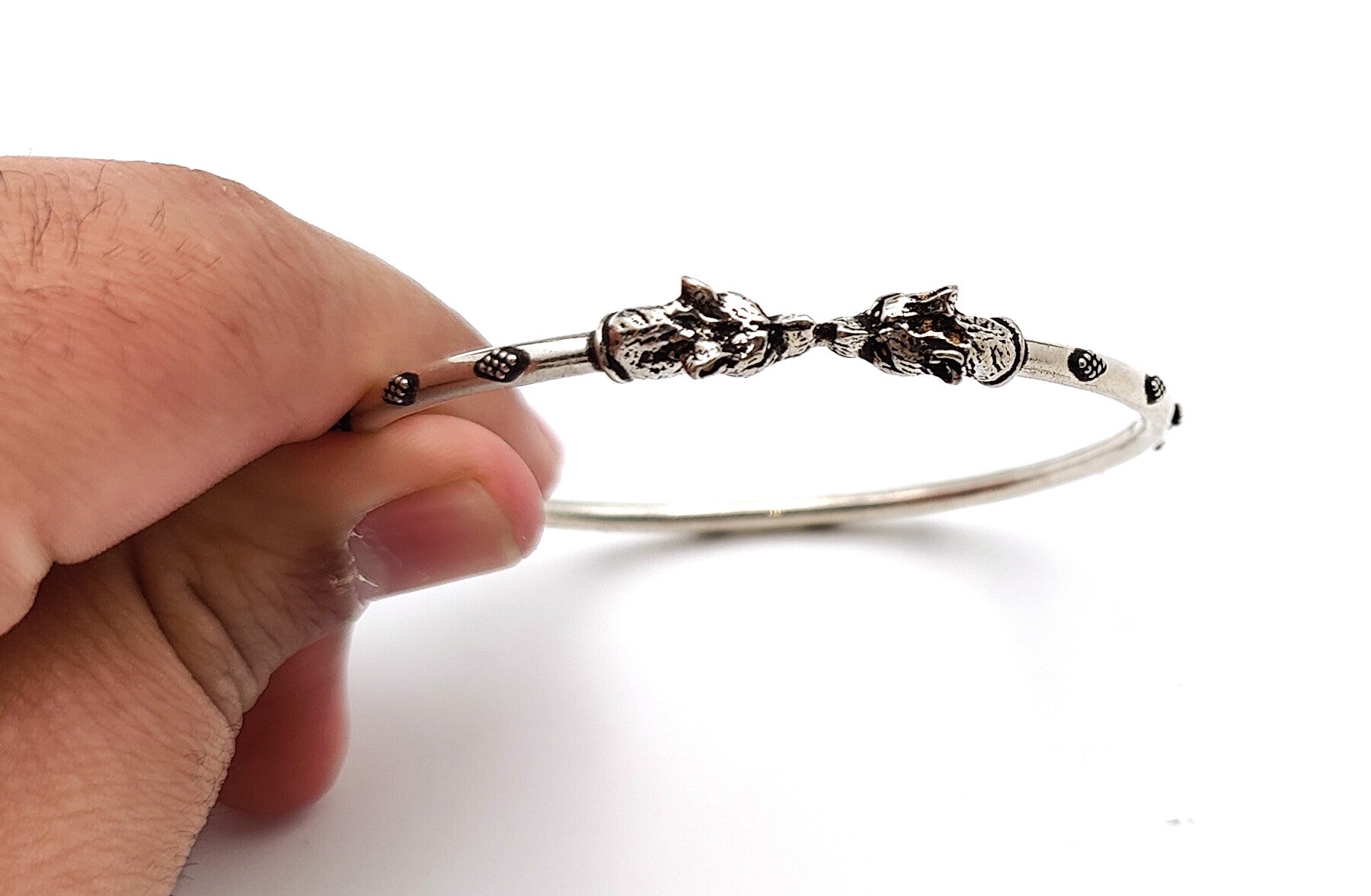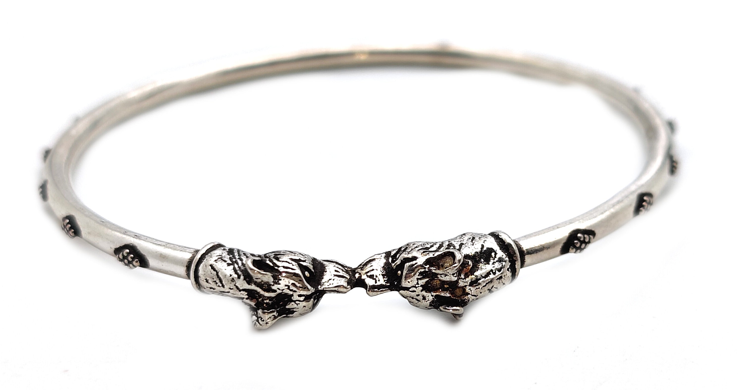 Introducing our elegant Silver Tiger Bangle for Her, crafted from premium silver and adorned with a majestic tiger design. This exquisite piece exudes sophistication and refined taste, making it a perfect accessory for any discerning woman. Elevate your style with this exclusive bangle, evoking the power and grace of the magnificent tiger.