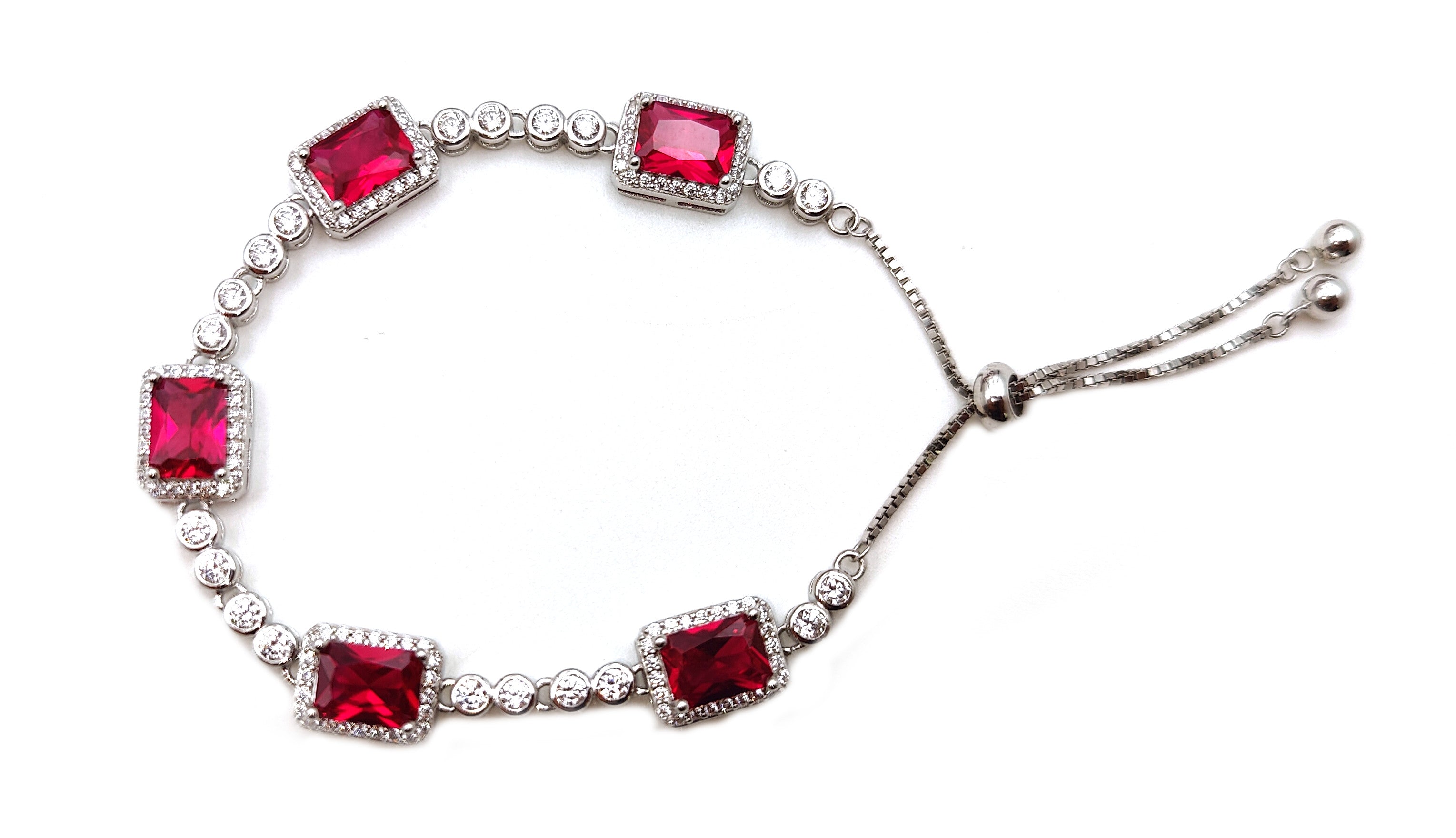 Elevate your elegance with this exquisite sterling silver bracelet, featuring a vibrant ruby centerpiece. Crafted with 925 stamped silver, it offers timeless beauty and durability. Perfect as a thoughtful birthday, anniversary, or Valentine’s gift, this bracelet adds a refined touch to any woman’s or girl’s jewelry collection. Its sophisticated design complements both everyday wear and special occasions.