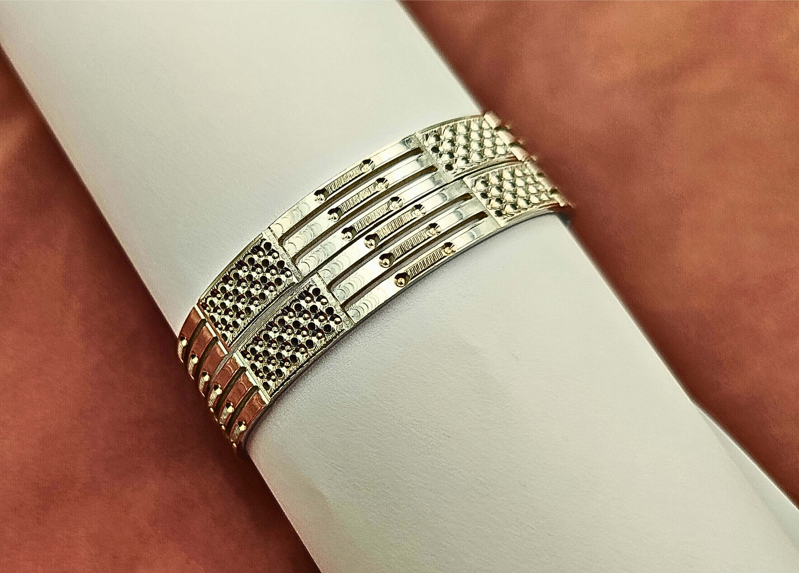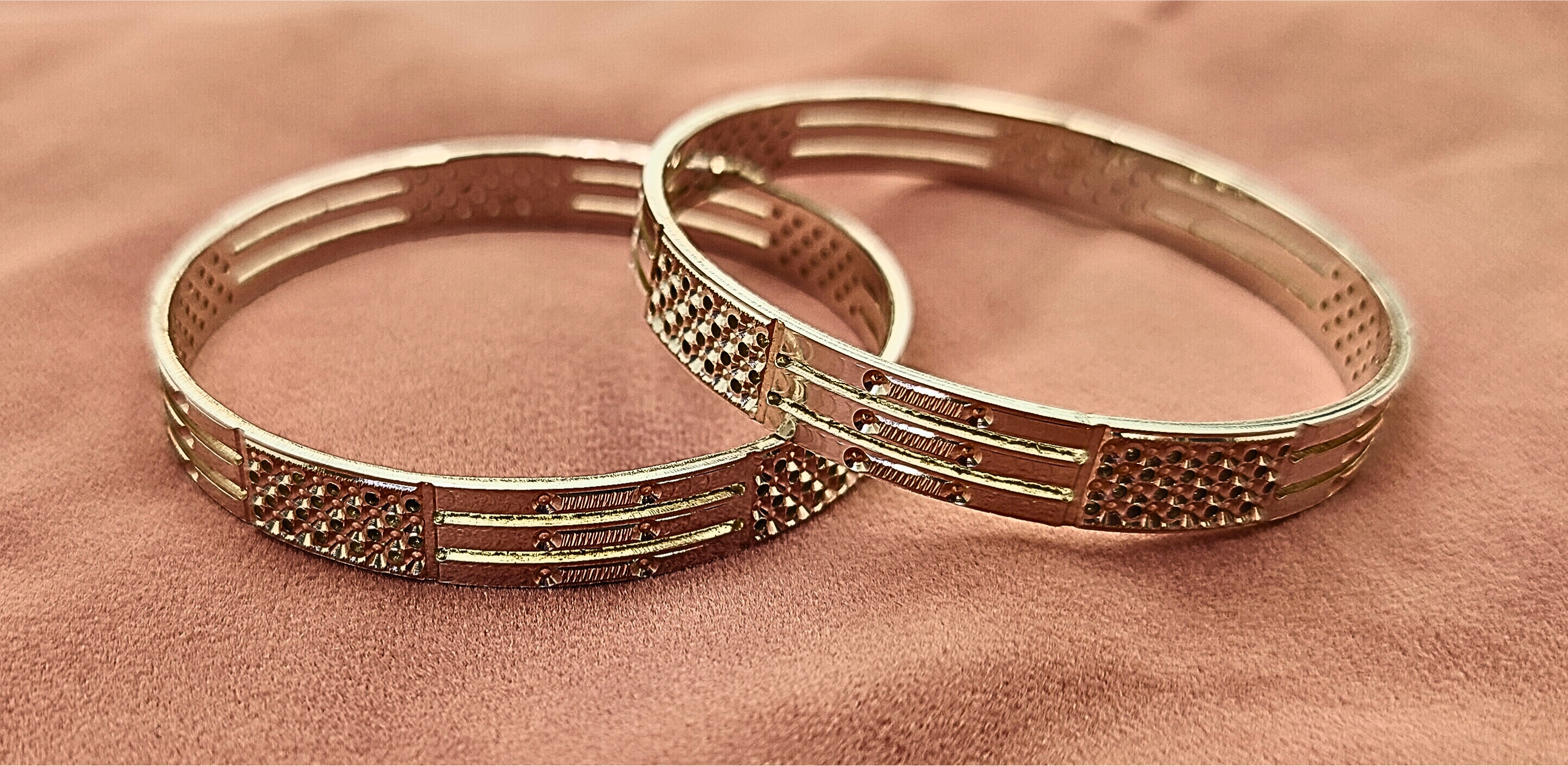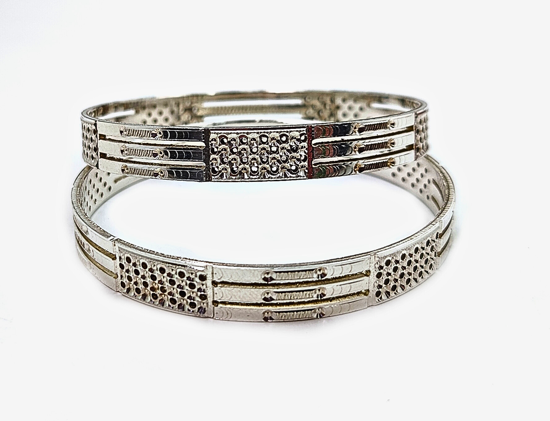 Delicate yet dazzling, the Twilight Trace Intricate Bangles in 925 Silver capture the magic of fine craftsmanship and timeless beauty. Designed with graceful patterns etched in pure sterling silver, these bangles are a celebration of femininity and tradition. Lightweight and elegant, they make the perfect accessory for festive occasions, daily wear, or thoughtful gifting.